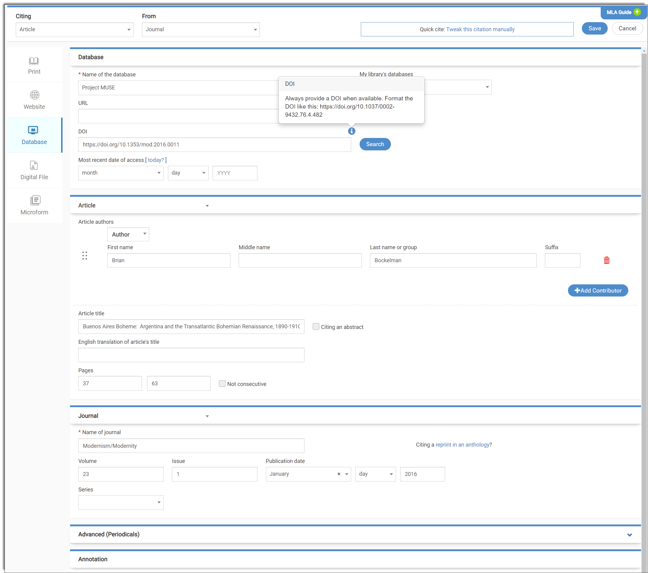 - Responsive forms. Watch your citation build as you type. Get pop-up help and error-checking, right where you need it.