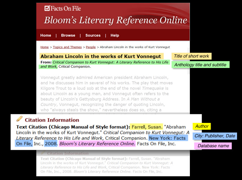How do I cite a short work from an anthology in a database?