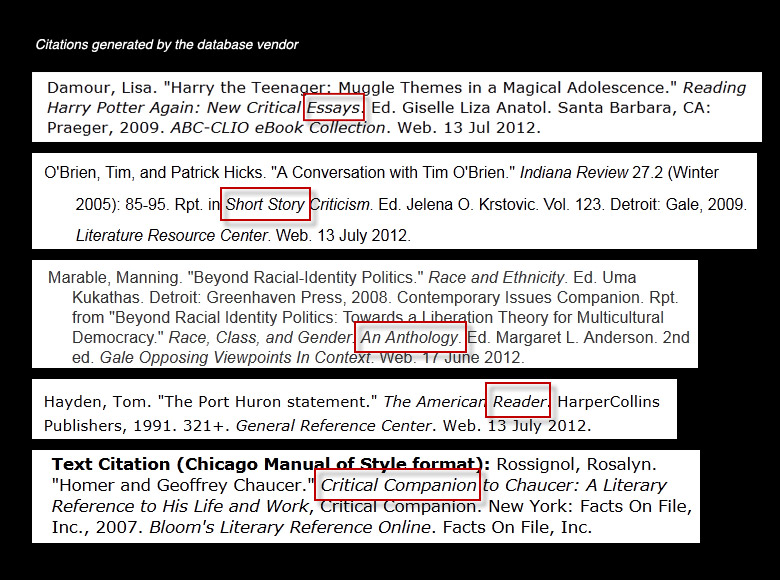 - In the vendor's citation in a database