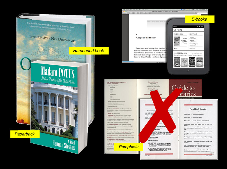 Whether your book is in print, on a computer or e-reader (e.g., Kindle, Nook, iPad), it is typically: