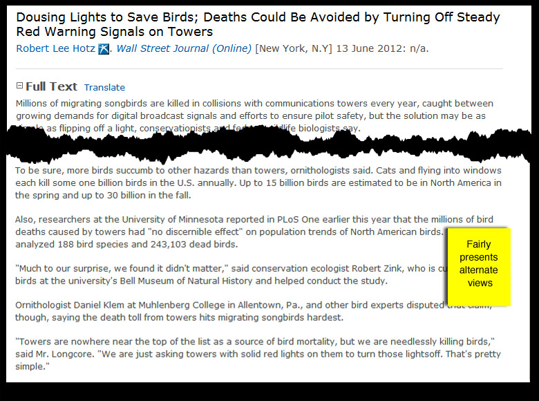 - Are the journalist's sources credible and relevant? (Tip: If the sources are unnamed, e-mail the reporter.)