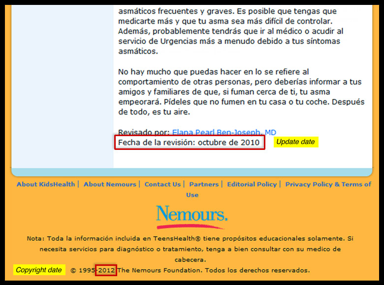 Tip: When no publication date is given, only MLA permits you to cite the copyright date (the latest date next to the copyright sign at the bottom of a page).
