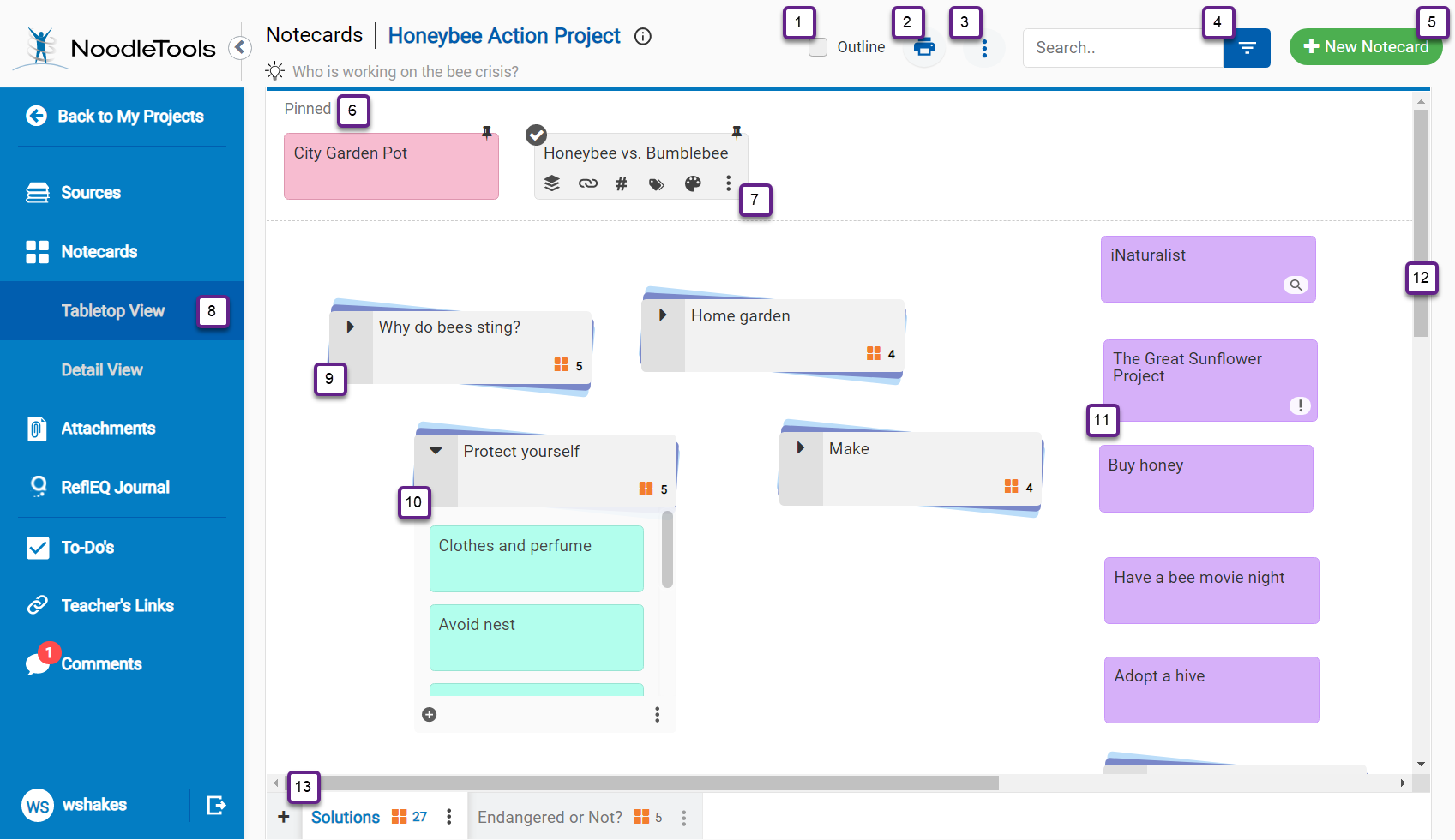 The Notecard Tabletop screen explained