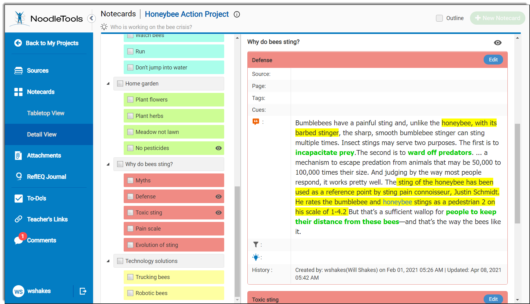 - Outline. Drag and drop notecards into the outline to provide evidence for each claim.
