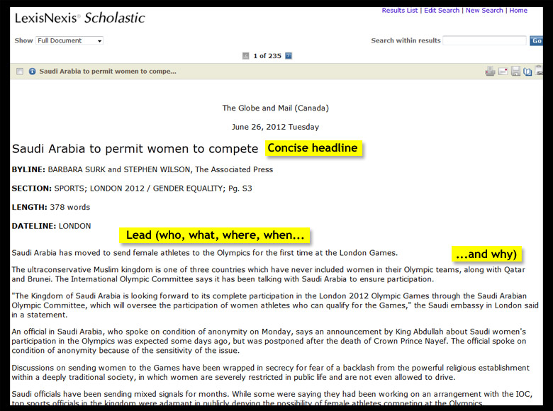 Tip: If the writer is a citizen journalist (a volunteer contributor not trained as a reporter), the article may have been posted without being fact-checked or edited. Evaluate the content thoroughly.