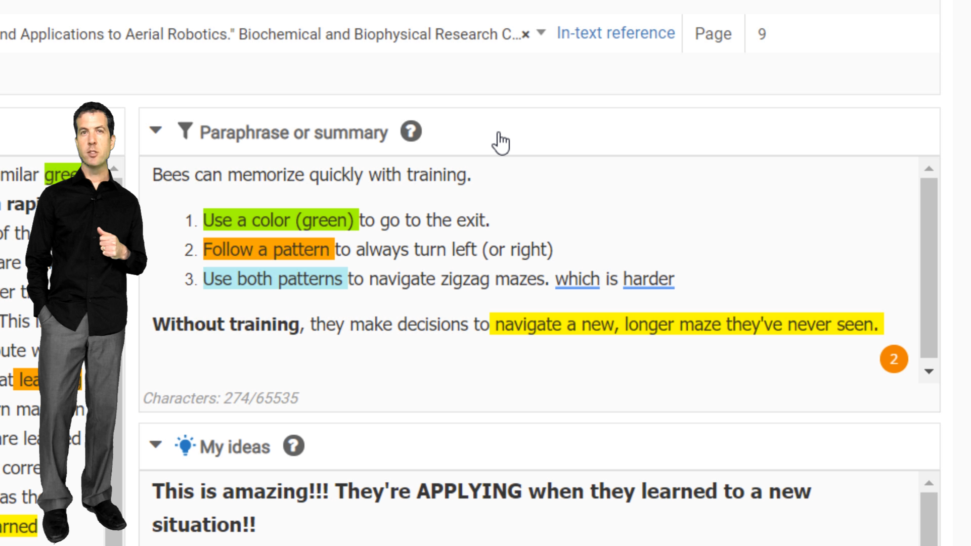 - Paraphrase or summary (“B”): Explain the source material in your own words. Check your understanding.